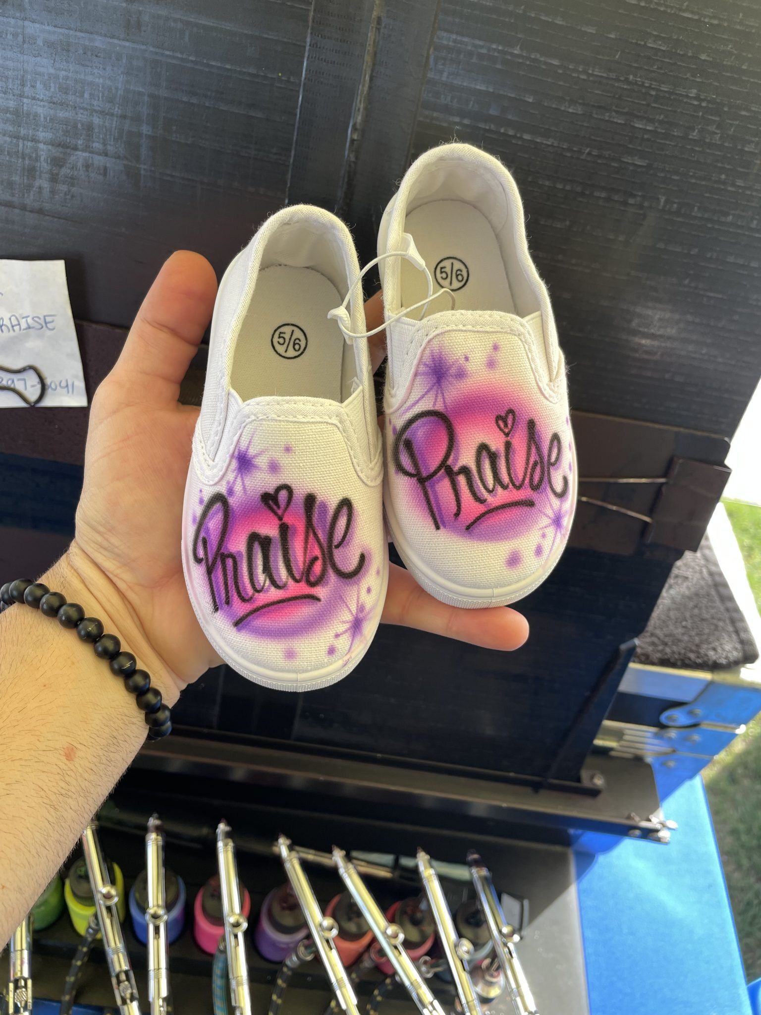 Not at all. The airbrush paint we use is water-based, non-toxic, and odorless, making it completely safe for indoor use.